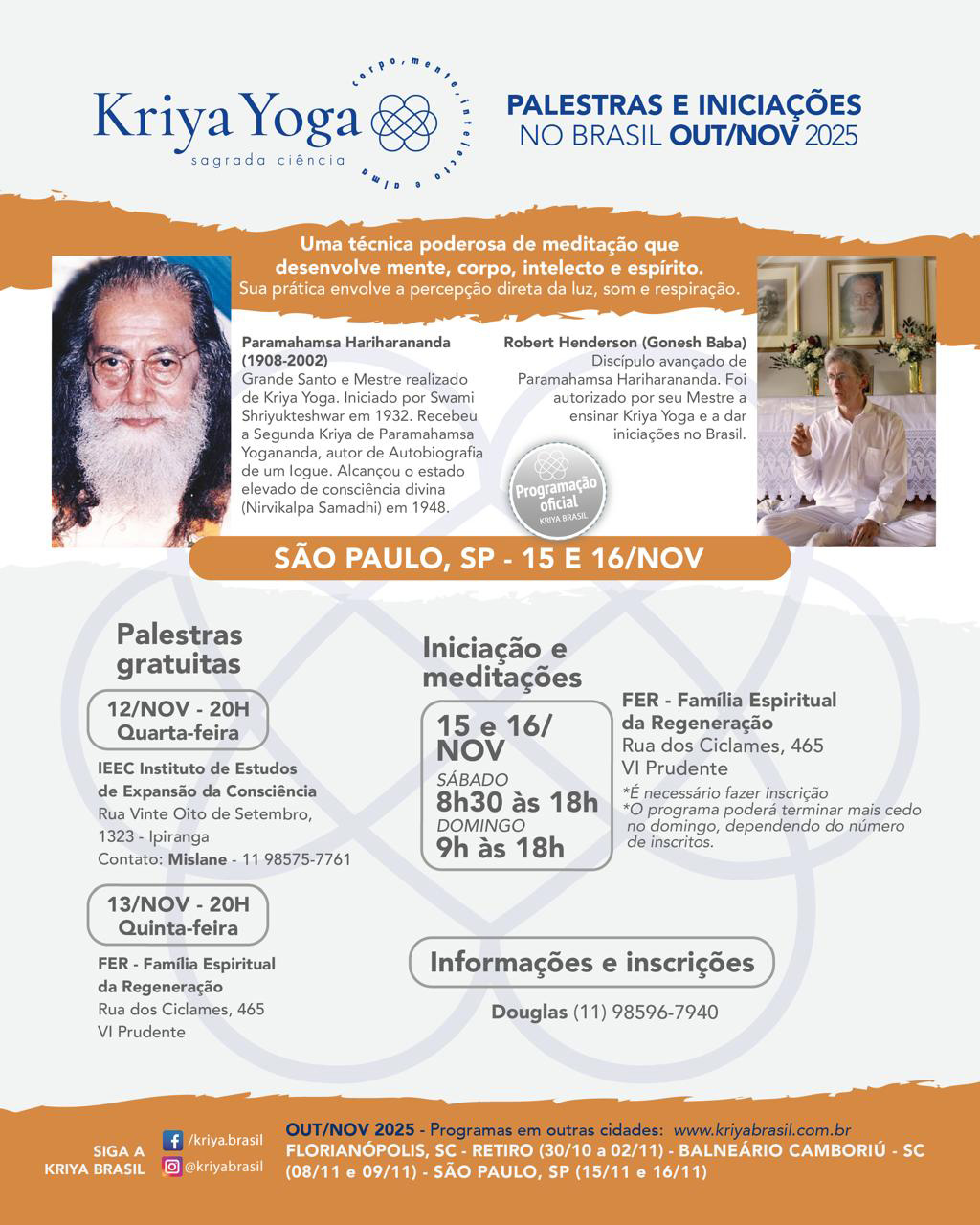 Kriya Yoga é uma ciência para essa expansão da consciência. A técnica da Pulsação traz luz a cada célula viva. O engajamento do coração, por meio da nossa sinceridade, permite que uma luz pura e coerente se una à luz da Pulsação e à luz da nossa Força Vital, essa luz no corpo e na Criação que é a própria Divindade, o Espírito Santo. A ressonância gerada é a Realização de Deus. A Divindade torna-se tangível, expressa como nossa verdadeira natureza, nosso Eu real, inseparável de Deus.